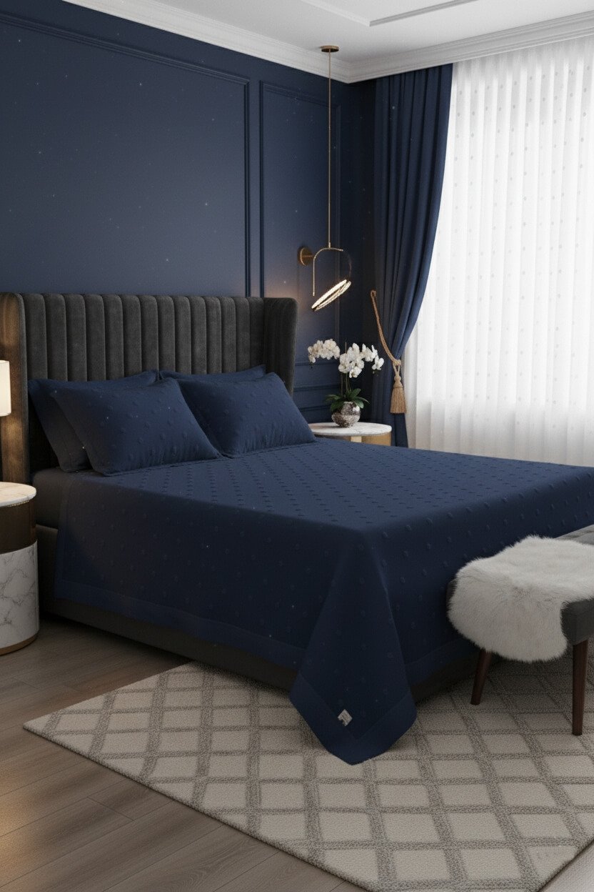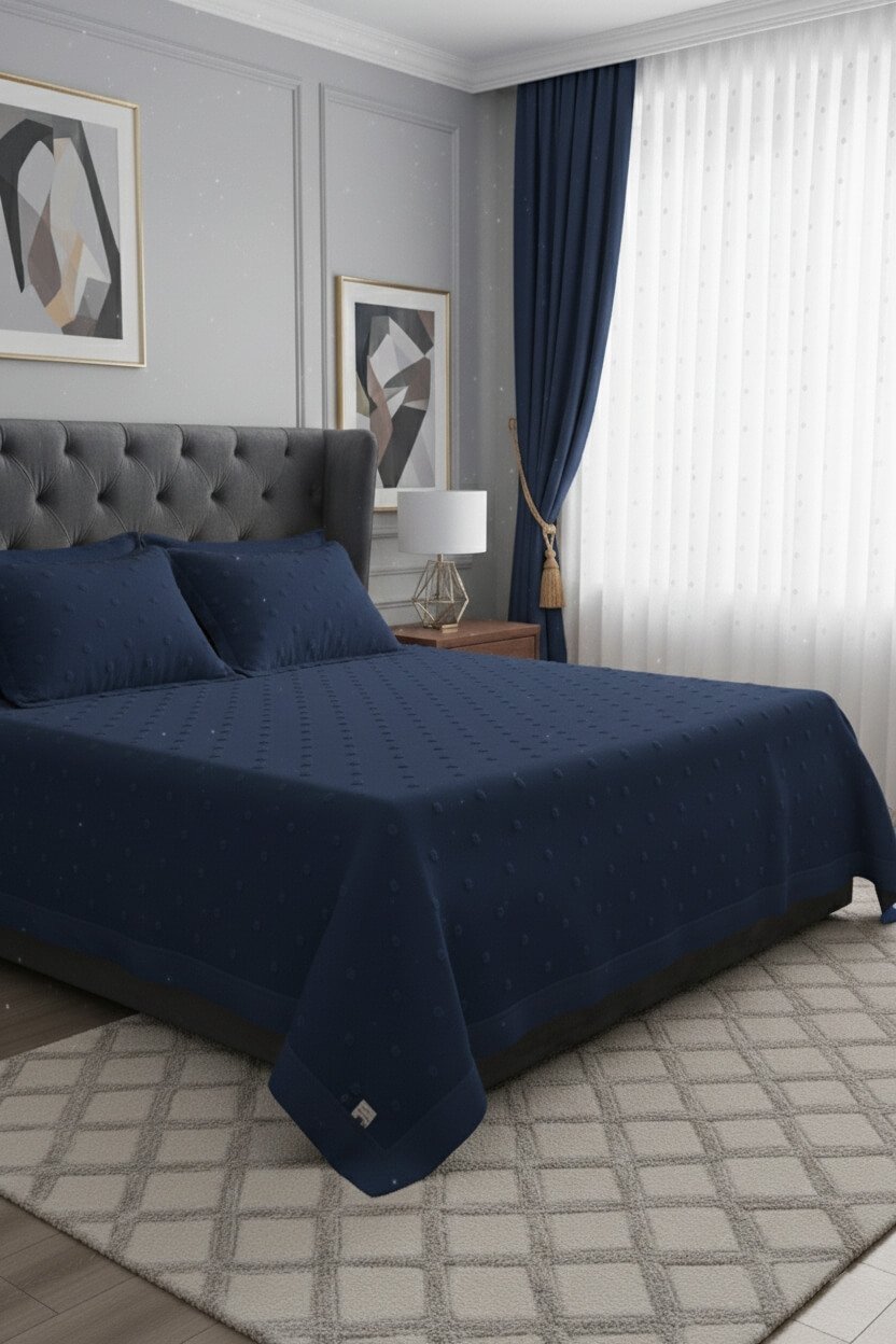 Lacivert rengin güçlü ve asil etkisini bohem ponpon detaylarla buluşturan bu set, yatak odanıza şıklık kazandırır. Kaliteli kumaşı dayanıklılık sunarken, geniş ölçüsüyle konfor sağlar. Modern ve bohem tarzın birleşimiyle tasarlanan bu ürün, dekorasyonunuza özgün bir hava katar ve uzun süreli kullanım vadeder.