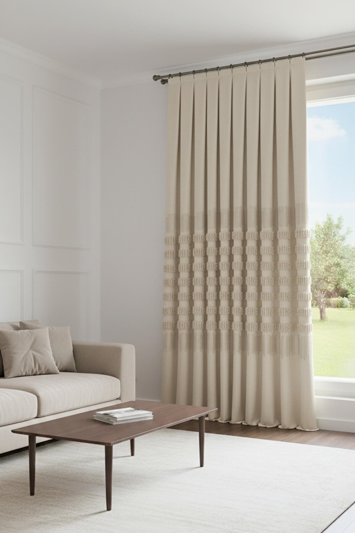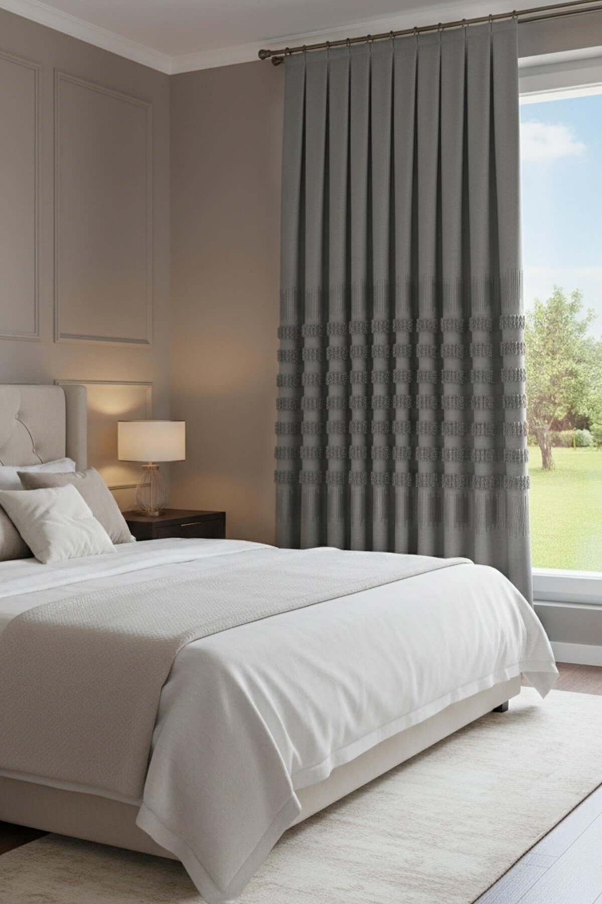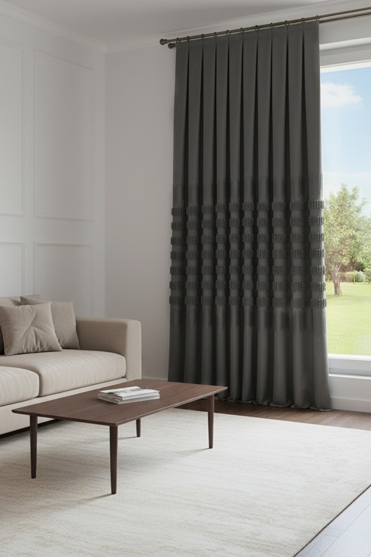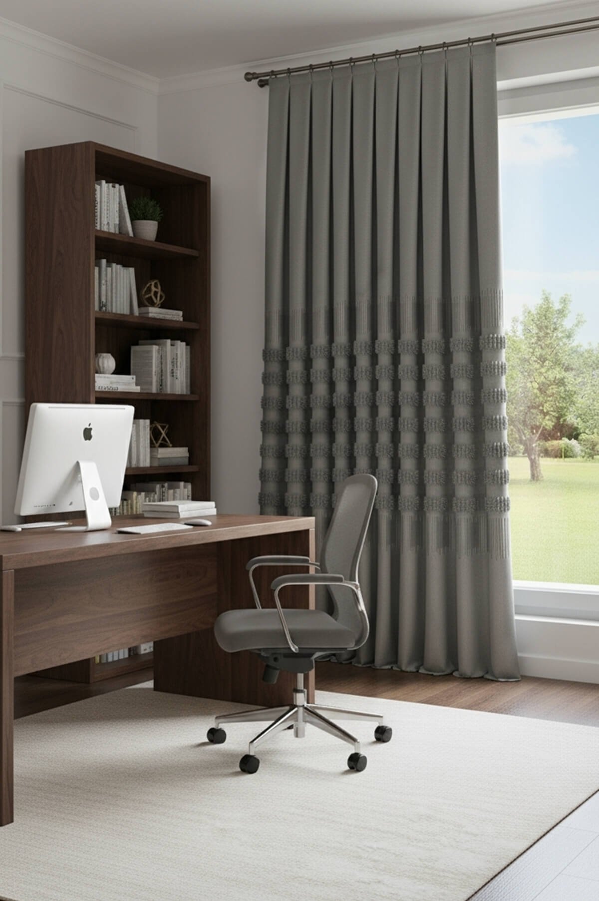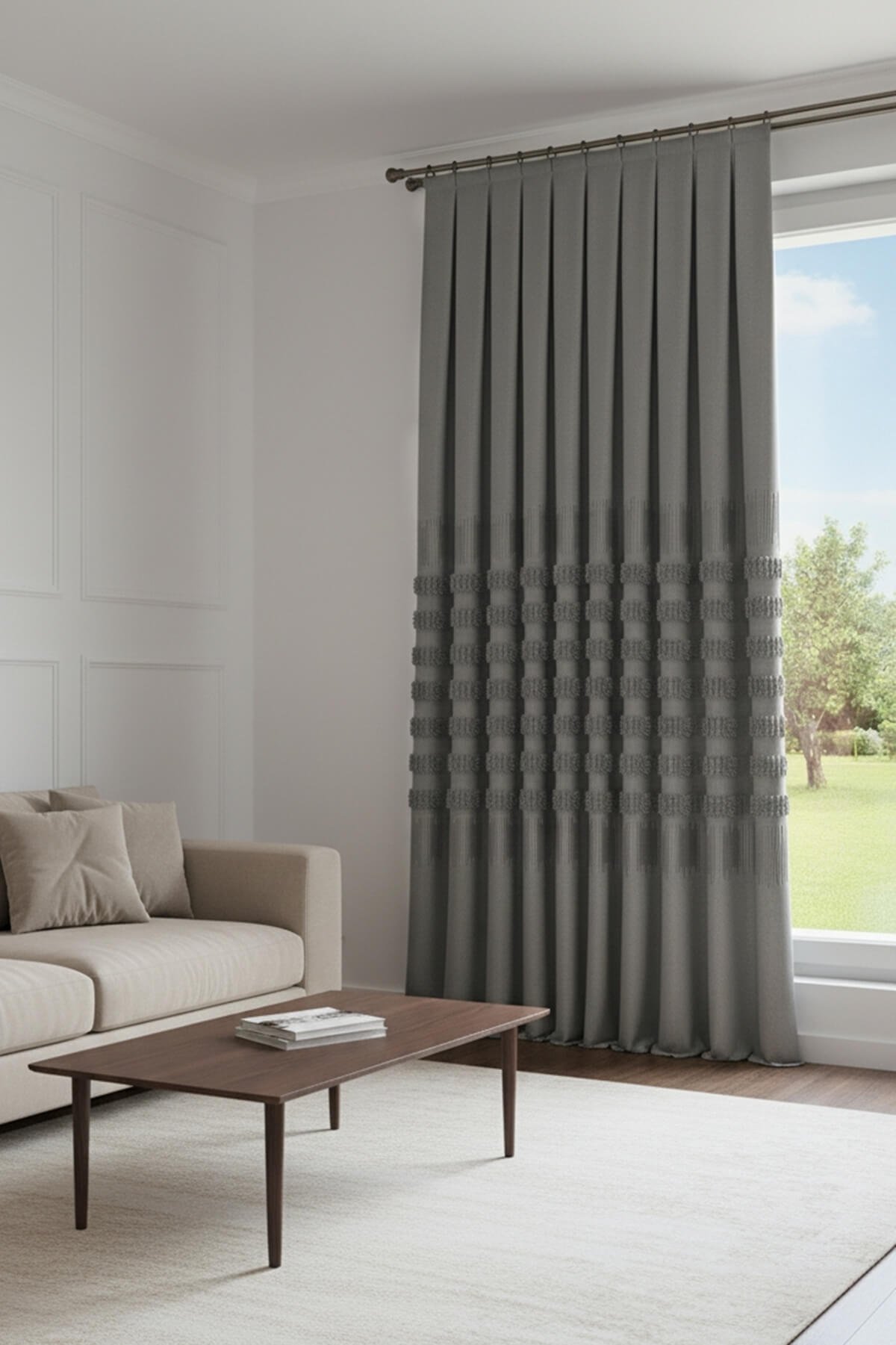 Şıklığın en sade hali: Gri Fon Perde. Minimalist ve modern çizgileri sevenler için ideal bir tercih olan bu perde, özel püsküllü deseniyle sadeliği bozmadan zenginlik katar. Nötr rengi sayesinde her türlü mobilya ve dekorasyon stiliyle kolayca uyum sağlar. Salonunuzdan yatak odanıza kadar her alanda kullanabileceğiniz bu eşsiz perde ile modern bir stil yaratın.